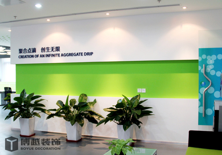 根据该企业的特点及理念进行设计-节能减排、环境保护,办公空间以白色和绿色为主,白色代表高雅,绿色代表节能环保,整体风格简单大方