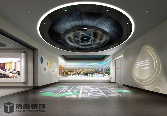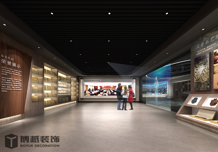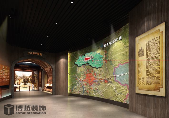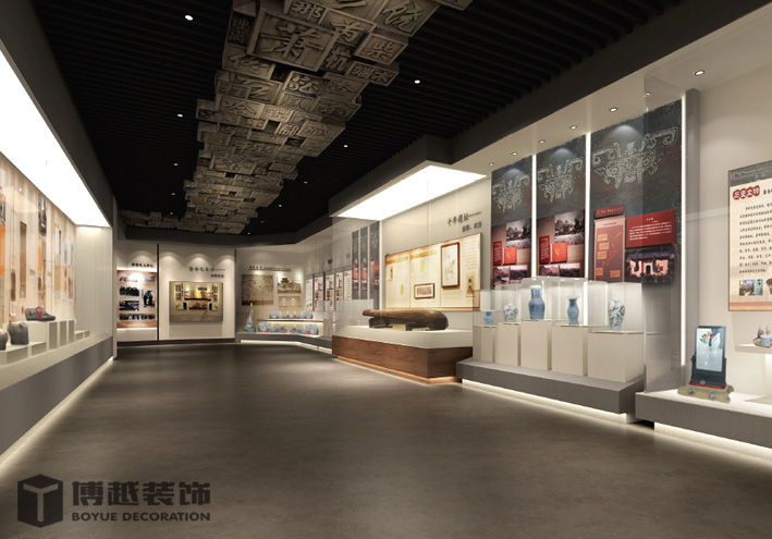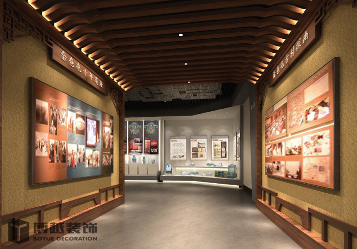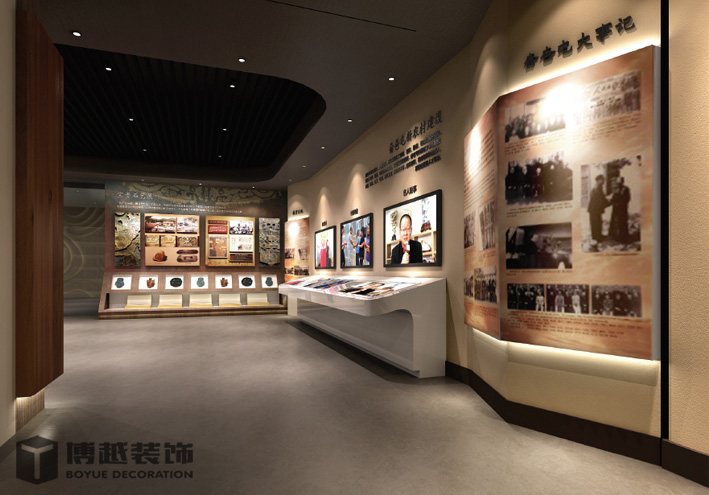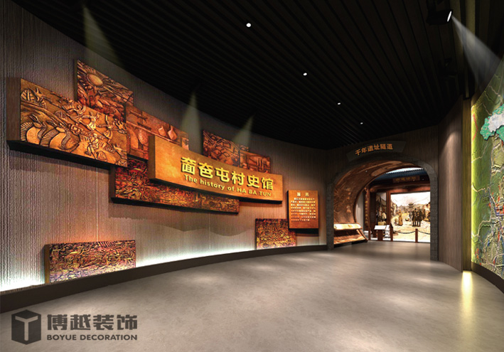 大幅图文展板,少量展品、天花采用奤夿屯姓氏浮雕